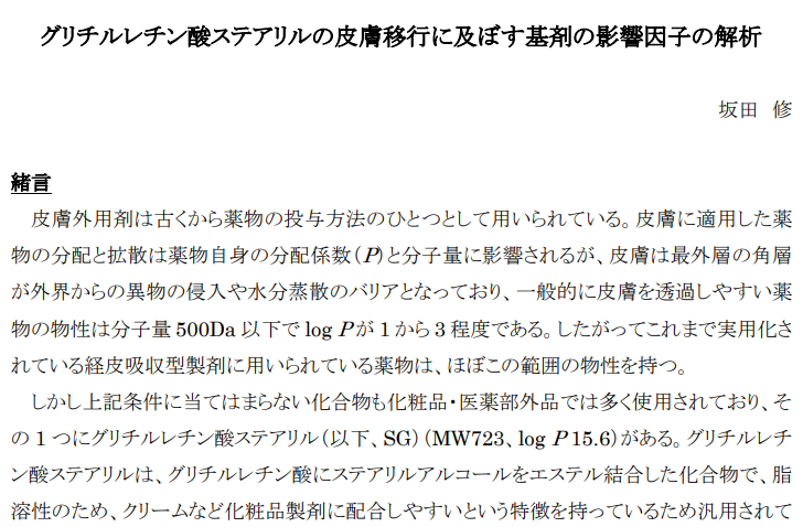 「肌の治療薬」として 医療の現場でも使われています。 風邪薬などに使われていて抗炎症作用があります。 シミ等の肌の炎症にも効果的ですね。 昭和薬科大学の研究でも有用性が示されています。